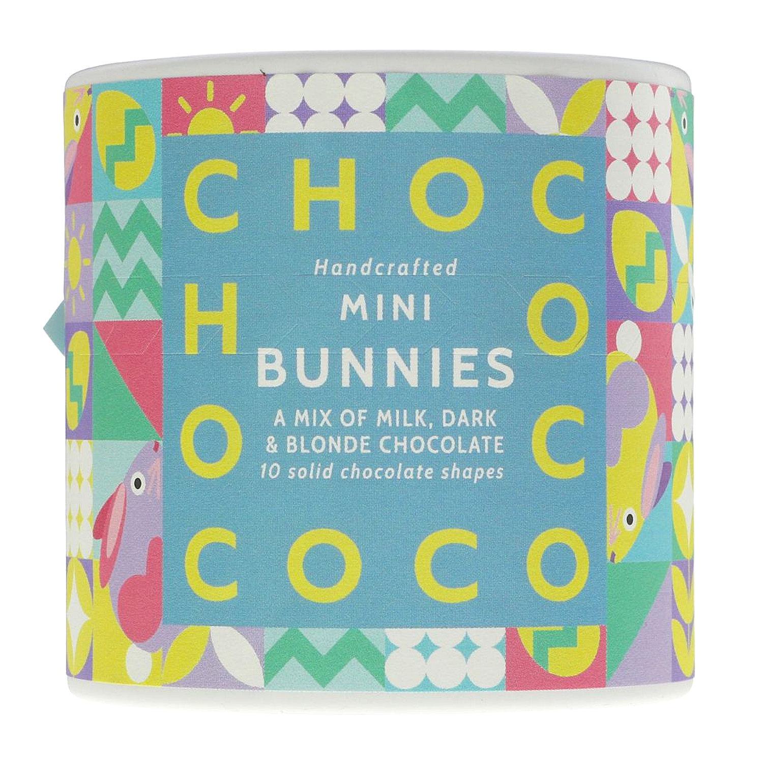 Mix Chocolates Mini Easter Bunnies ingredients: Colombia milk chocolate 33.3% (cocoa butter, sugar, milk powder, cocoa mass, sunflower lecithin, vanilla extract), Ecuador dark chocolate 33.3% (cocoa mass, cane sugar, cocoa butter, sunflower lecithin), Colombia blonde chocolate 33.3% (sugar, cocoa butter, caramel powder (sweet whey (milk), butter (milk), maltodextrin, sugar, skimmed milk, natural vanilla), milk powder, skimmed milk powder, caramelised sugar, sunflower lecithin, salt, natural caramel flavour).